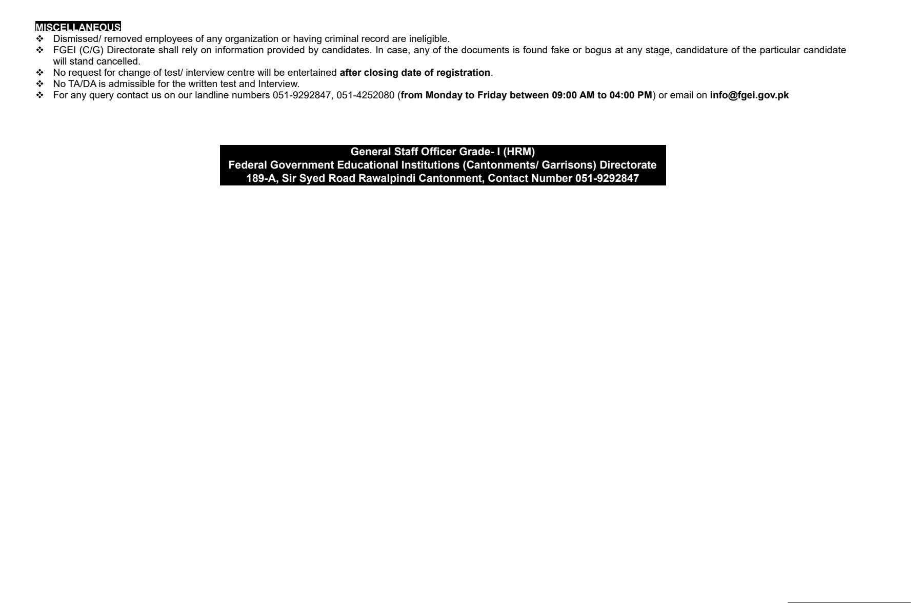 وزارتِ دفاع کے تحت فیڈرل گورنمنٹ ایجوکیشنل انسٹیٹیوشنز (FGEI) میں ایلیمنٹری سکول ٹیچرز، سمیت مختلف ٹیچنگ اور نان ٹیچنگ آسامیوں کا اعلان کر دیا گیا ہے۔