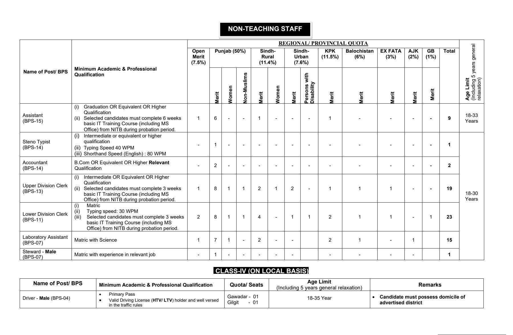 - EST Male (BPS-14): 13 Seats